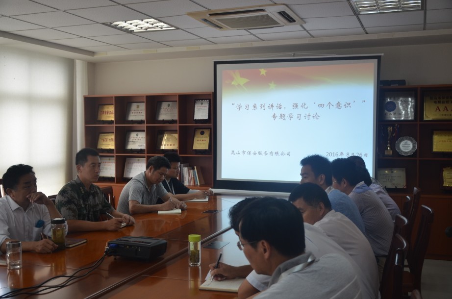 8月26日下午,保安公司黨支部在黨員之家開(kāi)展了“學(xué)習(xí)系列講話,強(qiáng)化‘四種意識(shí)’”的專(zhuān)題討論,支部全體黨員參加了此次活動(dòng)。