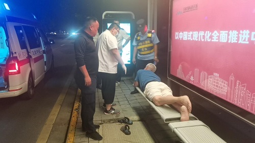 2023年7月11日晚上九點零九分,安保公司下屬駐花橋綜合執(zhí)法局綜合治理二中隊隊員線春賢發(fā)現(xiàn)暈倒老人并及時攙扶暖人心。