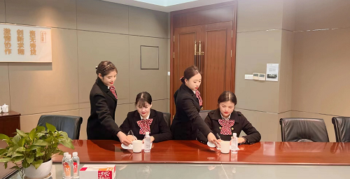 為進(jìn)一步促進(jìn)農(nóng)商行項(xiàng)目會(huì)務(wù)工作規(guī)范化,提高會(huì)務(wù)人員服務(wù)意識(shí)與服務(wù)技能。3月18日中午,昆通物業(yè)駐農(nóng)商行項(xiàng)目會(huì)務(wù)服務(wù)中心組織全體會(huì)務(wù)人員開展了會(huì)務(wù)服務(wù)技能培訓(xùn)。此次培訓(xùn)分為理論學(xué)習(xí)、操作技能和禮儀形體培訓(xùn)三部分,主要包括禮儀站姿、茶水服務(wù)、會(huì)務(wù)情景規(guī)范服務(wù)、服務(wù)意識(shí)和突發(fā)問題應(yīng)急處置等內(nèi)容?,F(xiàn)場(chǎng)模擬學(xué)習(xí)了會(huì)場(chǎng)物品擺放位置及會(huì)前具體操作流程;會(huì)中茶水服務(wù)、語言溝通技巧、應(yīng)急情況處置的技巧和方法;以及會(huì)后對(duì)會(huì)議相關(guān)用品高效有序清場(chǎng)。