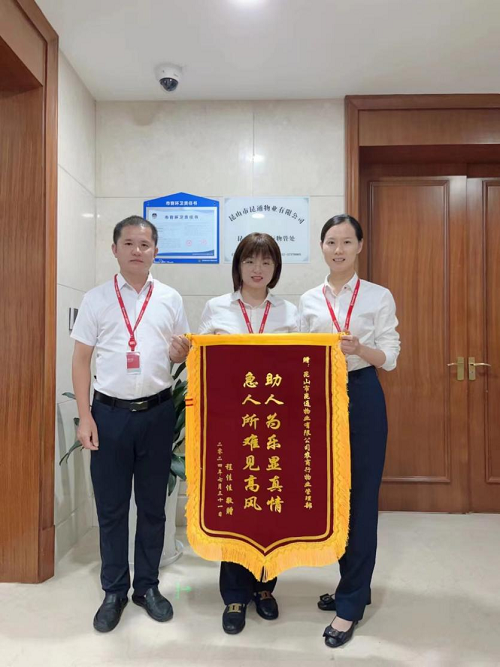 8月9日,昆通物業(yè)保安員仇國(guó)玉和楊福建像往常一樣在負(fù)責(zé)的區(qū)域巡邏,他走到南廣場(chǎng)快遞房門(mén)前時(shí),一個(gè)閃閃發(fā)光的物件引起了他的注意,走近一看,竟是一只價(jià)值不菲的金手鐲。面對(duì)這意外之財(cái),仇國(guó)玉和楊福建沒(méi)有絲毫猶豫,第一時(shí)間想到的是盡快找到失主。他們立即將金手鐲妥善保管,并向物業(yè)經(jīng)理報(bào)告了情況。隨后,通過(guò)多方努力,歷時(shí)兩天,終于聯(lián)系到了焦急萬(wàn)分的失主。當(dāng)失主看到失而復(fù)得的金手鐲時(shí),激動(dòng)之情溢于言表,對(duì)仇國(guó)玉和楊福建連連道謝,并送上了一面寫(xiě)有“助人為樂(lè)顯真情,急人所難見(jiàn)高風(fēng)”的錦旗。