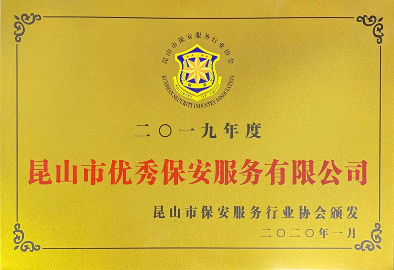 保安公司榮獲2019年度“昆山市優(yōu)秀保安服務(wù)...